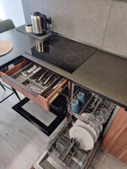 Квартира с дизайнерским ремонтом, сдается впервые. Стильный современный и фунциональный интерьер с полной мебелировкой и техникой (встроенный холодильник, посудомоечная машина, фильтр для воды, большой телевизор со Smart TV и акустическая система.