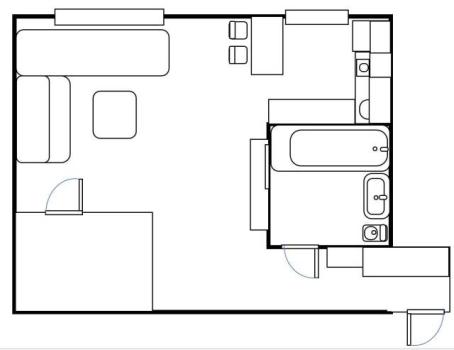 Реальная площадь квартиры: 44 кв.м. (балкон прибавлен к гостиной).