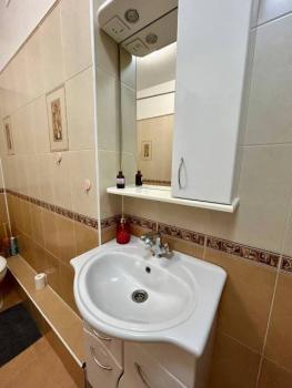 Туалет и ванная - плитка, титан, всегда есть горячая вода на кухне и в ванне. Счетчики на воду, электричество и тепло. Квартира светла, очень теплая и уютная. Внимание залог обязательное условие сдачи квартиры!