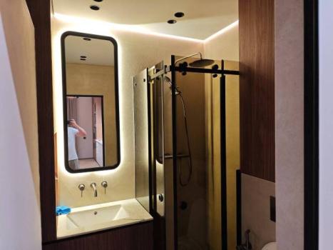 В каждой комнате теневые натяжные потолки с подсветкой и софитами.