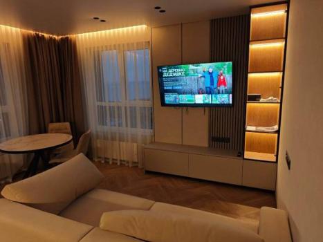 Требования: Новая квартира премиум-класса с дизайнерским ремонтом в приятных тонах. Ремонт выполнен из качественных, дорогостоящих материалов, завершен в августе 2025 г., куплена и отремонтирована не под сдачу, для себя, все продумано до мелочей, сдается временно. Есть вся необходимая бытовая техника, текстиль, посуда. Диван Lazurit с независимым пружинным блоком для комфортного сна, для дополнительной мягкости есть топер (дополнительный матрац 5 см толщиной).