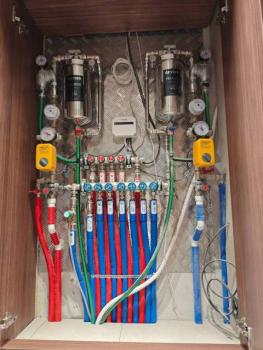 Установлена система коллекторного отопления и водоснабжения, каждая батарея и каждый кран имеет свою отдельную подачу воды, система защиты от протечек нептун, 2 фильтра на воду. В доме есть городское отопление. На случай отсутствия горячей воды есть титан. Также для межсезонья проведены теплые полы. 2 кондиционера. В каждой комнате установлены проводные интернет и телевизионные розетки, все сведено в одну точку.