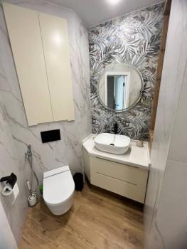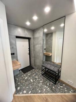 Особенности: Гардеробная, Железная дверь, Ламинат, Натяжной потолок, Пластиковые окна, Софиты, Стены выровнены, Тёплый пол, высота потолка 3,4м