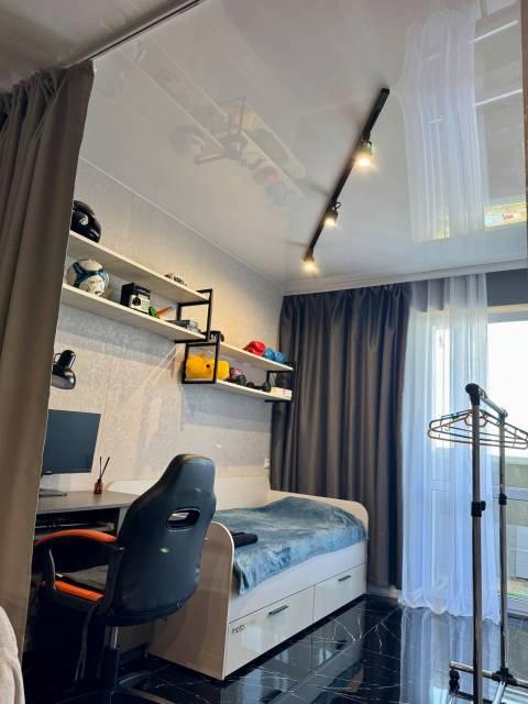 Особенности: Гардеробная, Железная дверь, Ламинат, Натяжной потолок, Пластиковые окна, Софиты, Тёплый пол