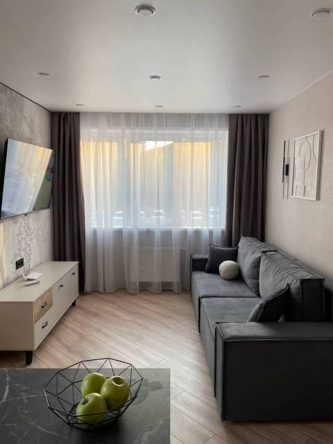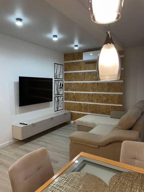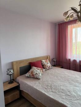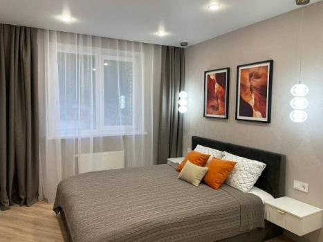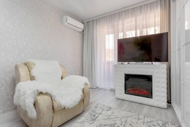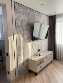 Квартира с готовой отделкой, полной мебелировкой, техникой, полностью готовой к Вашему комфортному проживанию. Удобства в квартире – стиральная машина, керамическая плита, вытяжка кухонная, набор посуды включая столовые принадлежности, электрический чайник, кондиционер, духовой шкаф, титан в ванной комнате, холодильник, +2 стула шторы, тюль, шкаф удобный для вещей, телевизор.