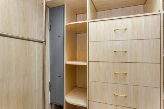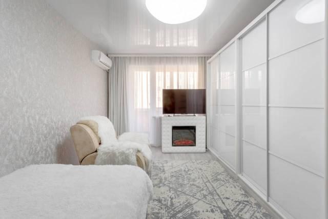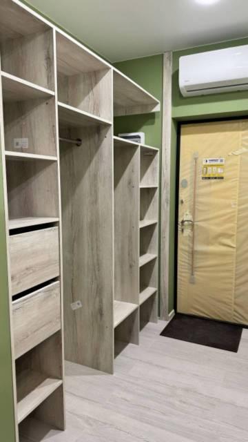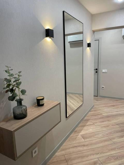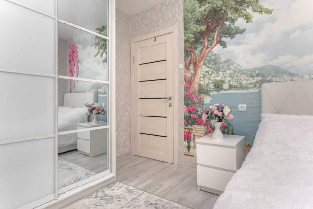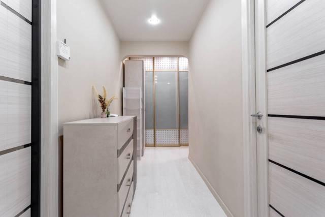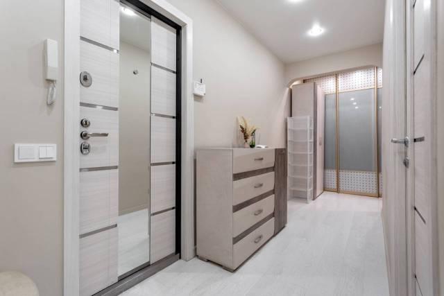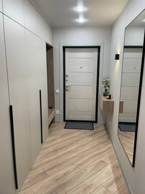 Особенности: Гардеробная, Железная дверь, Ламинат, Межкомнатные двери, Натяжной потолок, Пластиковые окна, Софиты, Стены выровнены, Тёплый пол