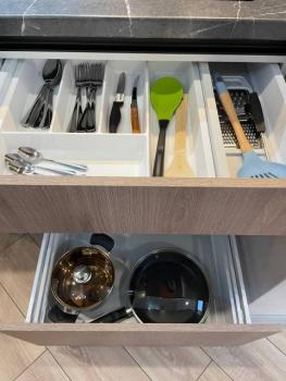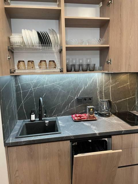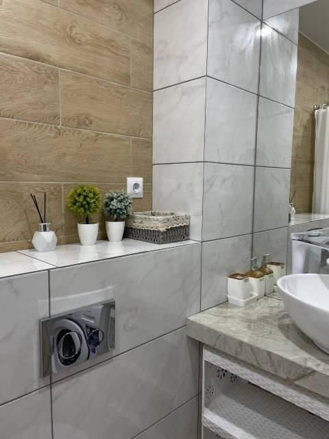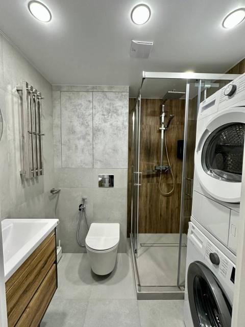 кондиционер, ТВ с Google TV, стеклокерамическая плита, вытяжка, холодильник, стиральная и сушильная машины, микроволновка, чайник, титан — заходи и живи.