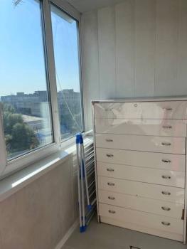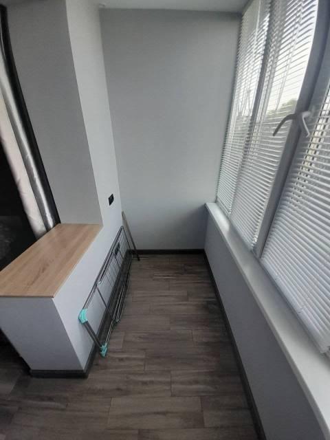 Лоджия застеклена, увеличивая комфортное проживание и площадь квартиры.
