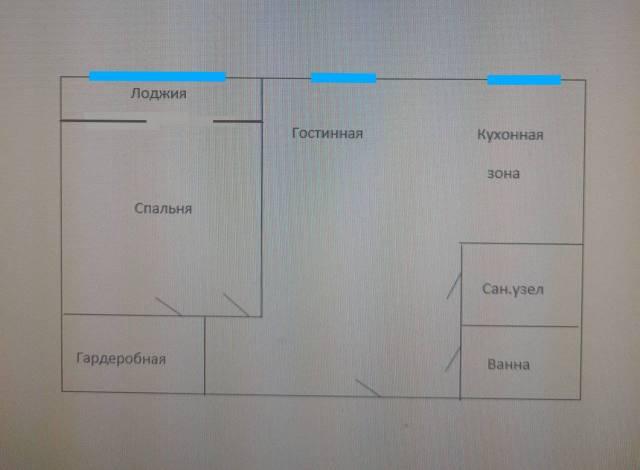 Особенности: Гардеробная, Железная дверь, Лоджия, Межкомнатные двери, Натяжной потолок, Пластиковые окна, Софиты, Стены выровнены, Тёплый пол