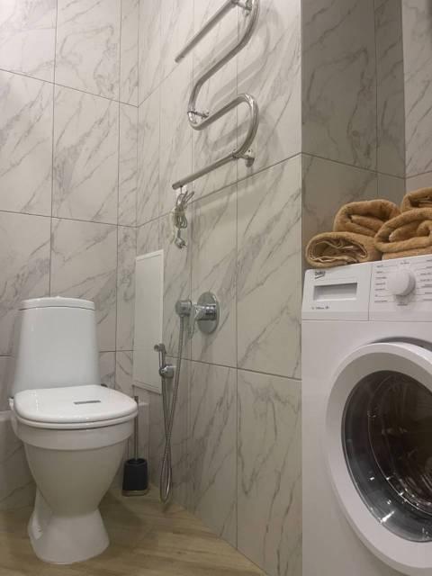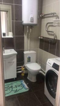 Стоит хорошая железная дверь, для проживания все есть. Легко добраться в любую точку города автобусы ходят один за одним, рядом мост два рынка детский сад, две остановки, три магазина. БЕЗ ЖИВНОСТИ.