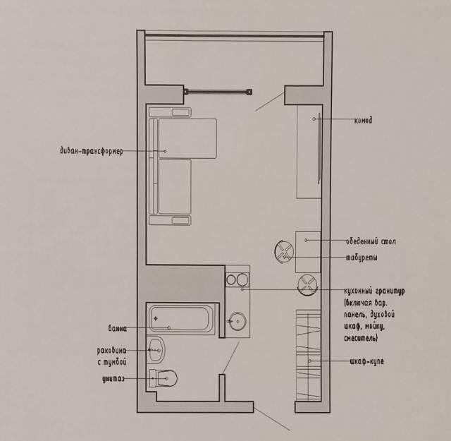 Мебель: Диван, Журнальный столик, Кухонный гарнитур, Обеденный стол,, Шкаф-купе