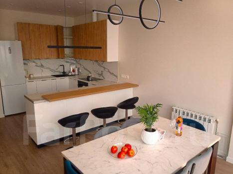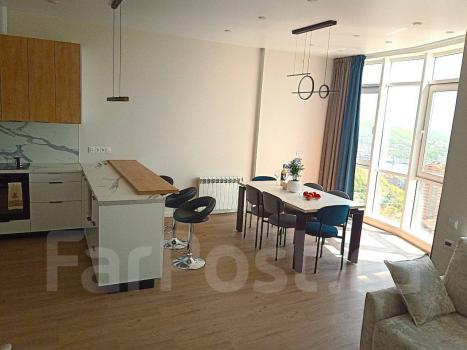 Особенности: От собственника. Без оплаты комиссии. Новая квартира. Отличный вид на бухту Золотой Рог, мосты, Русский остров, пролив Босфор Восточный, Амурский залив. До центра 5-10 мин на автомобиле или 30 мин пешком. Панорамное витражное остекление: много света и превосходный вид на город и море. Тёплый пол в санузле, прихожей, гостиной.