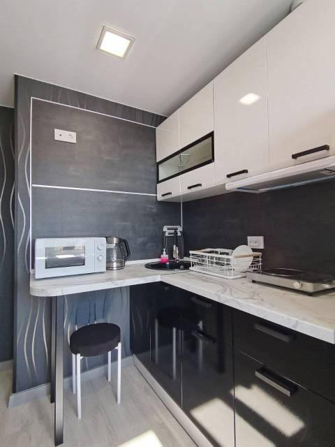 Техника: Вытяжка, Микроволновая печь, Стеклокерамическая, Стиральная машина, Телевизор, Холодильник, Кондиционер