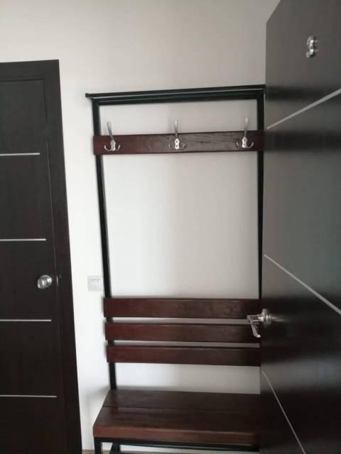 Мебель: Двуспальная кровать - внутри место под белье, Диванчик маленький, Журнальный столик, Кухонный гарнитур, Небольшая горка, Вместительный шкаф-внутри зеркало, большой мягкий пуф , пуфики-как стульчики-3 шт, прихожая с зеркалом, комод, Обеденный стол на кухне (раздвигается)-, есть посуда на кухне., Компьютерный стол.