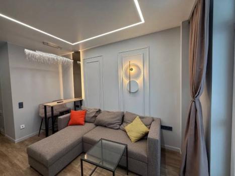 Мебель: Двуспальная кровать, Диван, Журнальный столик, Кухонный гарнитур, Обеденный стол, гардеробна...