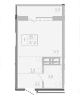 1-к квартира, 25.4 м²40 000 р.