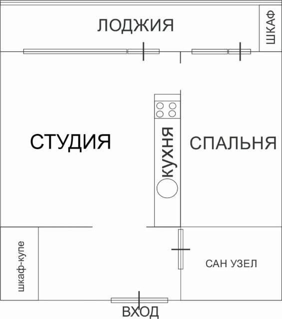 Мебель: Диван, Кухонный гарнитур, Обеденный стол, Шкаф