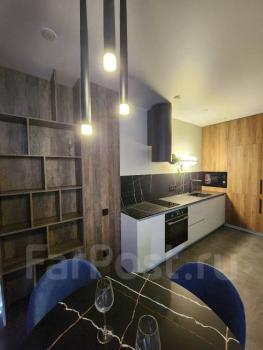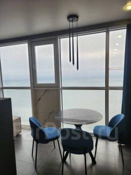 Особенности: Сдается квартира с дизайнерским ремонтом с видом на море. Прекрасный вид на закат. Квартира теплая и уютная. По всей квартире теплый пол. Двухспальная кровать и огромный диван. Вся мебель делалась на заказ по индивидуальному проекту. Стол и столешница из кварца. Гардероб, много ящиков хранения. В квартире есть все необходимое для комфортной жизни.