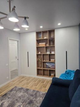 Особенности: Железная дверь, Ламинат, Межкомнатные двери, Натяжной потолок, Паркет, Пластиковые окна, Софиты, Стены выровнены, Тёплый пол
