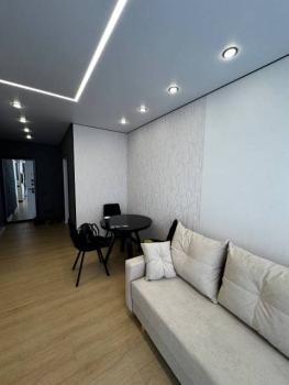 Особенности: В квартире сделан ремонт, Железная дверь, Ламинат, Лоджия, Межкомнатные двери, Натяжной потолок, Пластиковые окна, Софиты, Стены выровнены, Тёплый пол