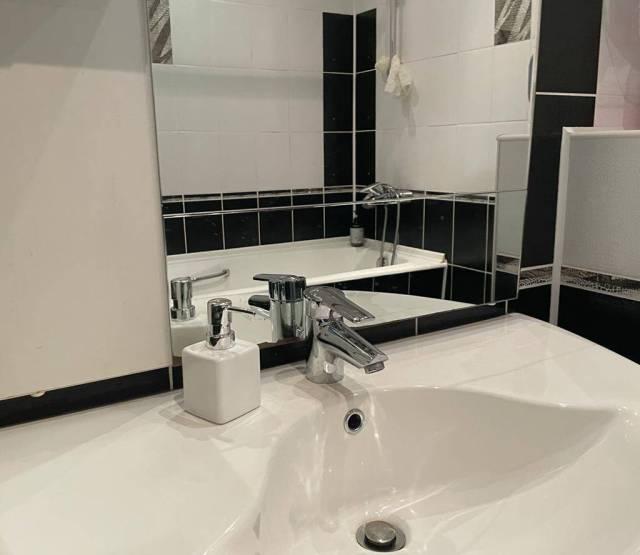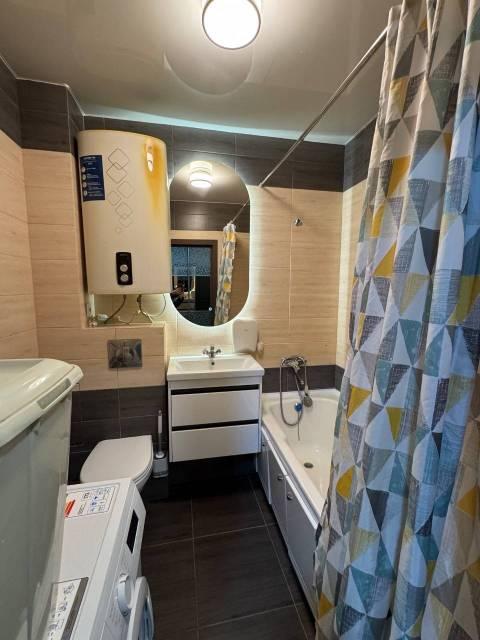 Теплый пол в ванной! В наличии: посуда, гладильня доска.