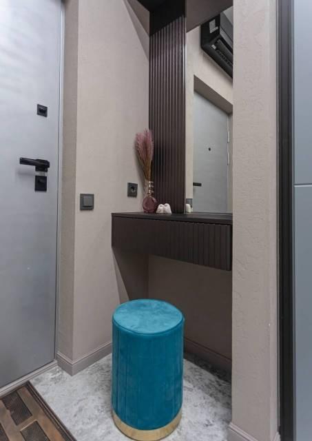 Мебель: Кухня с встроенной бытовой техникой, большой диван, обеденная зона, шкафы гардеробные, кровать двуспальная 160х200см. Мебель и техника- на фото.