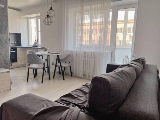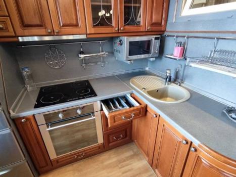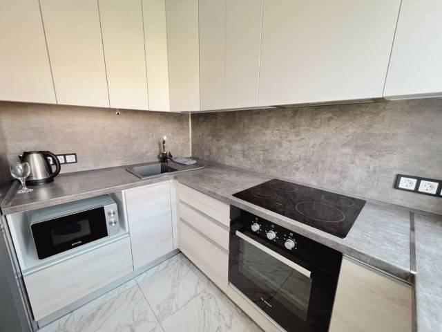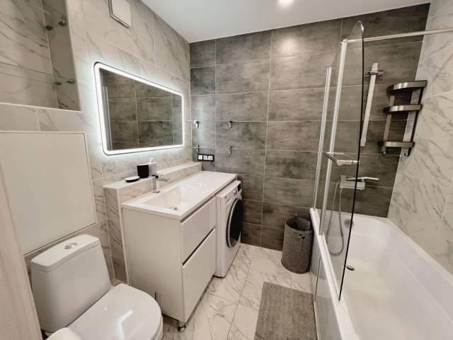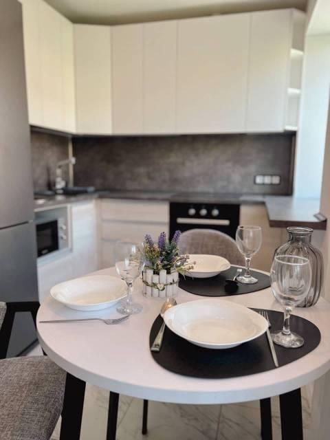 Полностью укомплектована новой мебелью и бытовой техникой и готова для проживания (посуда, кухонные принадлежности, постельное белье на 4 человек, гель для душа, жидкое мыло, шамнунь, кондиционер, набор средств для стирки и уборки, халаты, тапочки, набор полотенец и т.п.). Интерактивное телевидение и Wi-Fi. USB розетки. Тёплые полы. Детские замки на окнах.