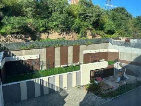 Есть сквер для прогулок. Внутри дома новая детская площадка.