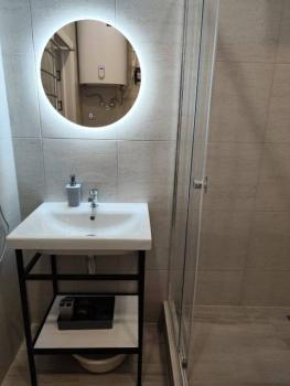 Санузел - инсталяция Geberit (Sw), унитаз Jacob Delafon (Fr), стиральная машина Samsung, насос-измельчитель SaniPro XR (Fr), душевая кабина керамогранит и встроенная душевая система типа тропический дождь, душевая стеклянная дверь Appollo (It), акриловая ванна 160 cm, электрополотенцесушитель Terminus, бойлер на 100 литров Electrolux