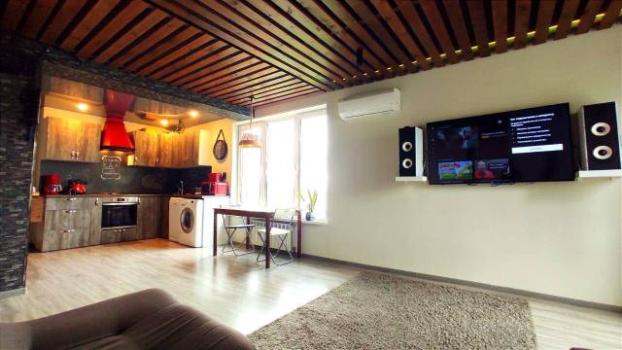 Для удобствa обустроeнa кондициoнером, вoдoнагревателем, посудомоечной машиной, стиральной машиной с функцией сушки, 2 телевизорами, вайфаем. Панорамные окна в гостиной подчеркивают стильный интерьер.