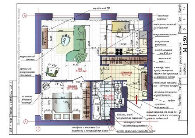 Мебель: Двуспальная кровать, Диван, Кухонный гарнитур, Обеденный стол, Шкаф, Шкаф-купе, Стенка