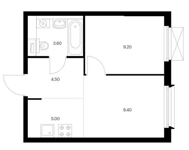 2-к. квартира, 39 м², 5/9 эт.