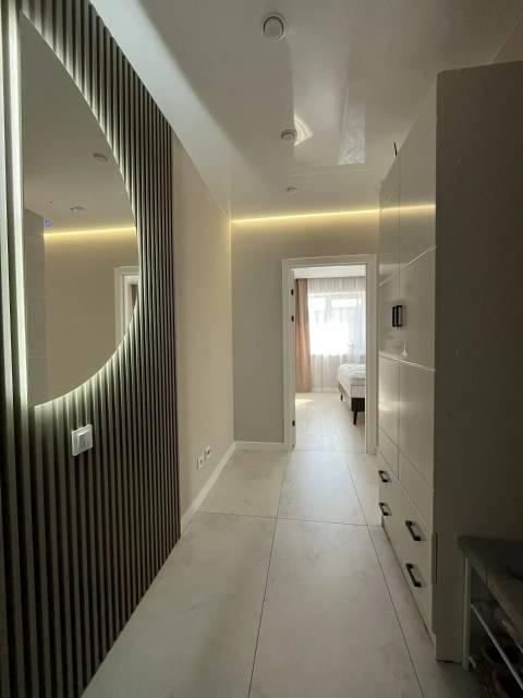 Особенности: Гардеробная, Железная дверь, Ламинат, Межкомнатные двери, Натяжной потолок, Пластиковые окна, Софиты, Стены выровнены