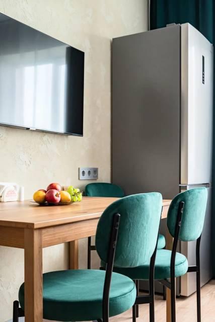 Мебель: Двуспальная Диван, Кухонный гарнитур, Обеденный стол, Шкаф