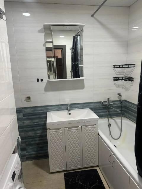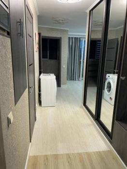 Особенности: Сдается двухкомнатная квартира с абсолютно новым ремонтом (вы будете первым жильцом). В коридоре гардеробная с большим зеркалом. В туалете теплый пол, титан, стиральная машина. На кухне дорогой кухонный гарнитур, посудомоечная машина, духовой шкаф, микроволновая печь, индукционная плита, вытяжка, большой холодильник, кофемашина, чайник, фильтрованная вода. В гостиной раскладной диван, телевизор. Отдельно большая гардеробная с зеркалом с подсветкой. В спальне двухспальная кровать, комод. Балкон.