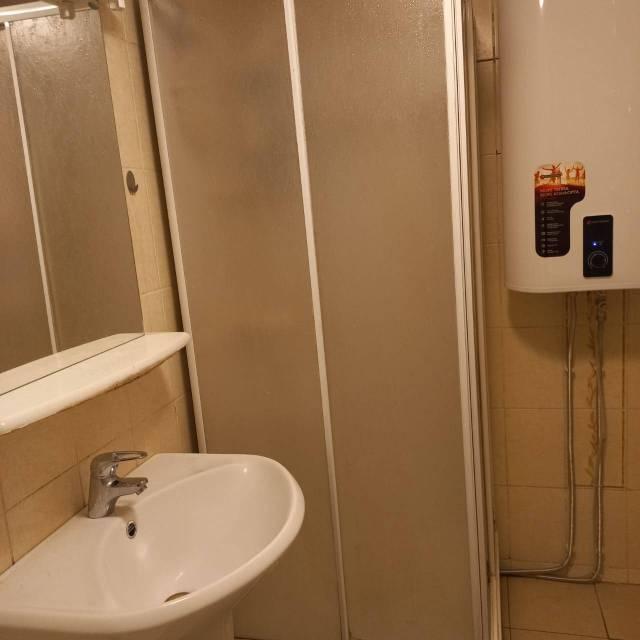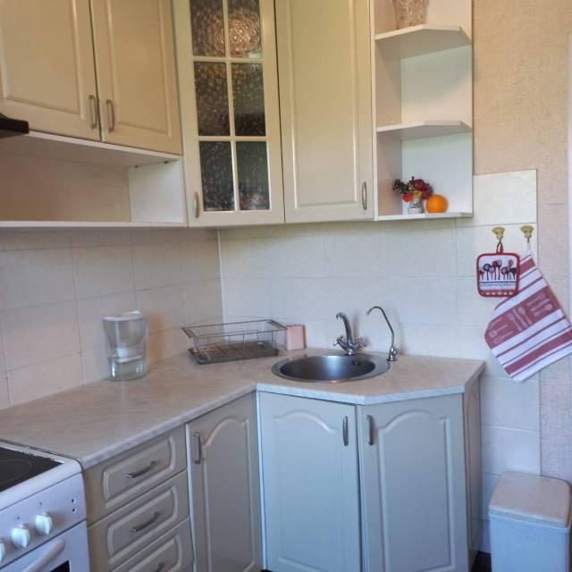 Техника: Встроенная стеклокерамическая плита, встроенный электрический духовой шкаф, вытяжка, холодильник, смеситель с установленным фильтром питьевой воды, чайник, стиральная машина, титан на 80 литров, телевизор в зале, телевизор в спальне, пылесос, кондиционер, микроволновая печь.