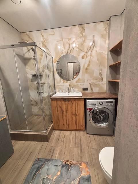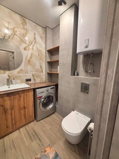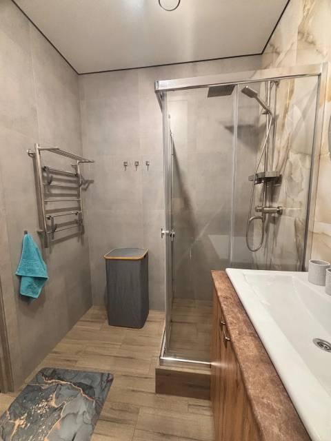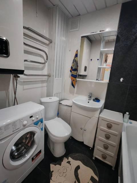 Для комфортного проживания есть всё необходимое: СВЧ-печь, холодильник, плита, чайник, стиральная машина, водонагреватель, пылесос, 2 больших телевизора.