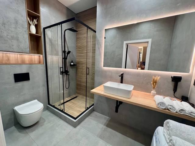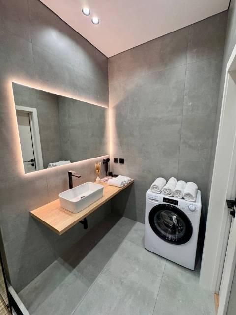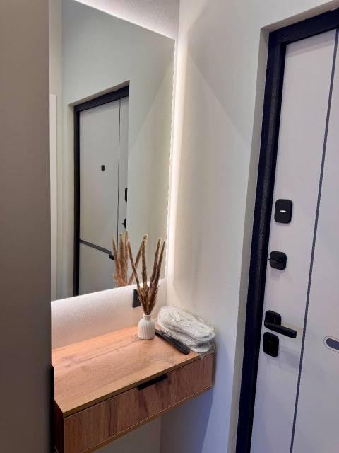 Особенности: Посудомоечная машина, Стиральная машина с сушкой, Железная дверь, Натяжной потолок, Паркет, Пластиковые окна, Стены выровнены, Тёплый пол, Межкомнатные двери, Софиты