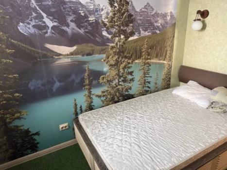 - Спальная комната (15 кв.м.): двуспальная кровать (парящий эффект, подъемный механизм, подсветка), шкаф, прикроватные тумбы (2 шт), телевизор 50 дюймов;