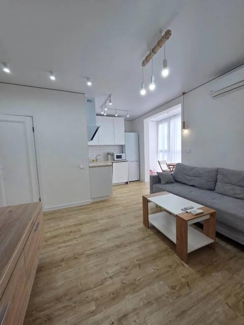 Особенности: Квартира находится в центре города, с очень удобным расположениес. Высокие потолки. Красивый вид на Золотой мост. Планировка - гостиная-кухня, большой сан узел. Большая гардеробная. Имеется вся необходимая бытовая техника. Железная дверь. Ламинат. Пластиковые окна. Тёплый пол. На въезде во двор шлагбаум - парковочное место.