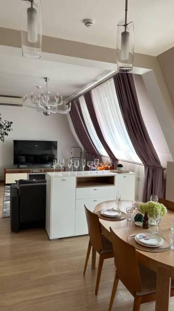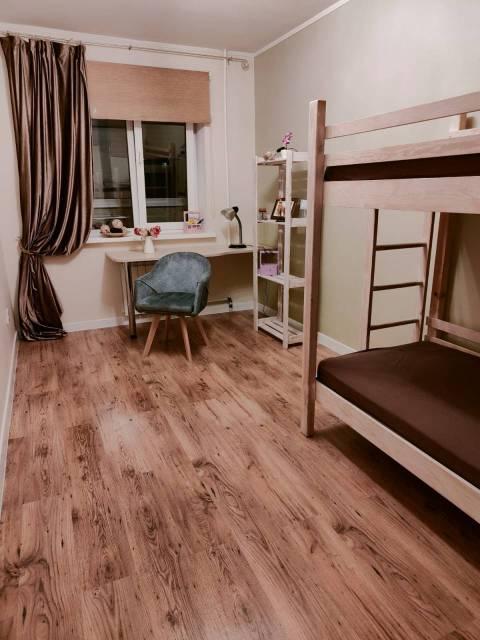Мебель: Квартира полностью укомплектована. Есть все необходимое для комфортного и длительного проживания: двуспальная кровать, гардероб, детские кровати 2 шт., письменный стол со стульями, шкафы для детской одежды, раскладывающийся диван, кухонный гарнитур, обеденный стол, шкаф-купе.