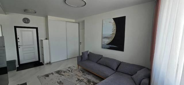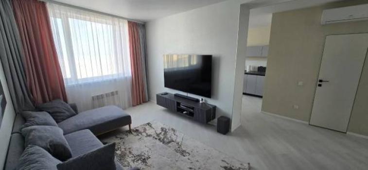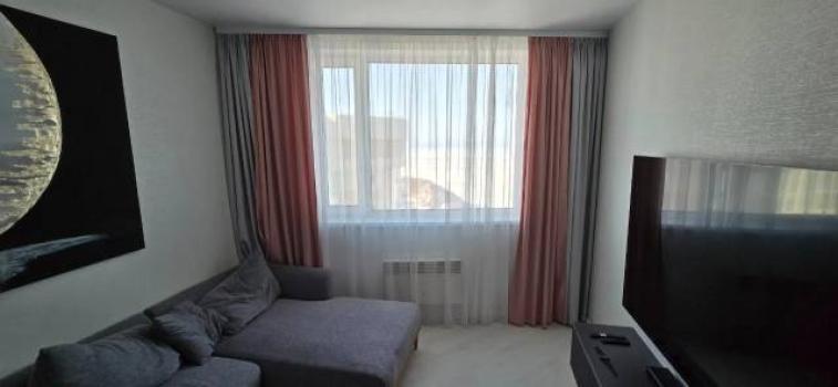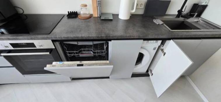 В квартире имеется все, что необходимо для комфортного проживания: Кондиционер (с функцией обогрева), Микроволновая печь, Вытяжка, Варочная панель, Духовой шкаф, Посудомоечная машина, Измельчитель пищевых отходов, Холодильник, Титан (бойлер на 100 литров), Чайник, Телевизоры (два - 50 дюймов в спальной комнате и 55 дюйма с кухне-гостиной), Стиральная машина, Сушильная машина