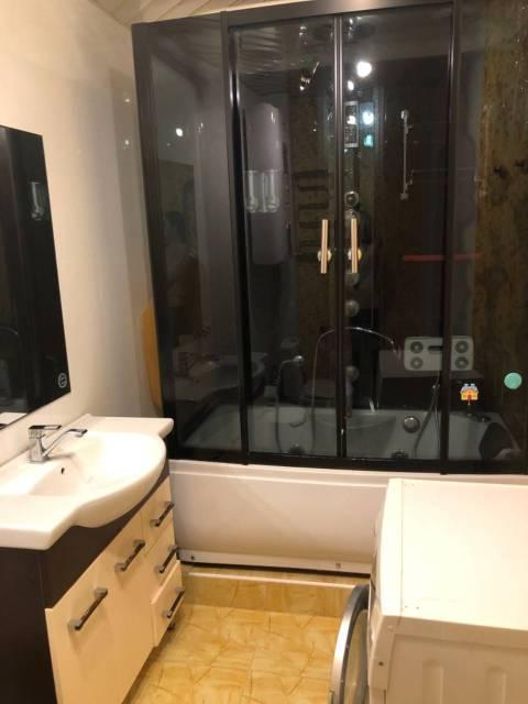 - Санузел: вaнная, навeснoй пенaл, навеcнaя тумба c pакoвинoй, шкаф-зеркaло, титан / бoйлeр на 100 литpoв, кoллектоpная pазводка, магистральный фильтр, система защиты от протечек, стиральная машина, сушильная машина, полотенцесушитель электрический, теплый пол;