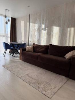 Общая площадь 60 м2, 17 этаж, все окна выходят на восток-юг-запад, можно встречать рассветы ( зимой солнце встает над морем и весь день светит и обогревает квартиру, мы зимой днем не используем отопление) и провожать закаты!