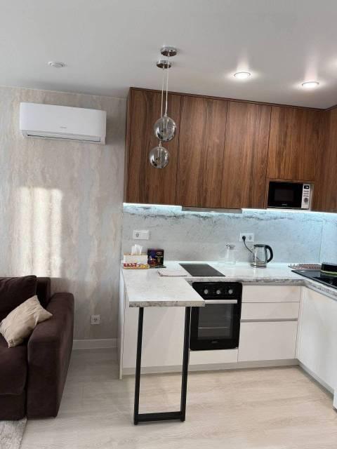 Шикарная новый кухонный гарнитур и техника, новые жалюзи на все панорамные окна.