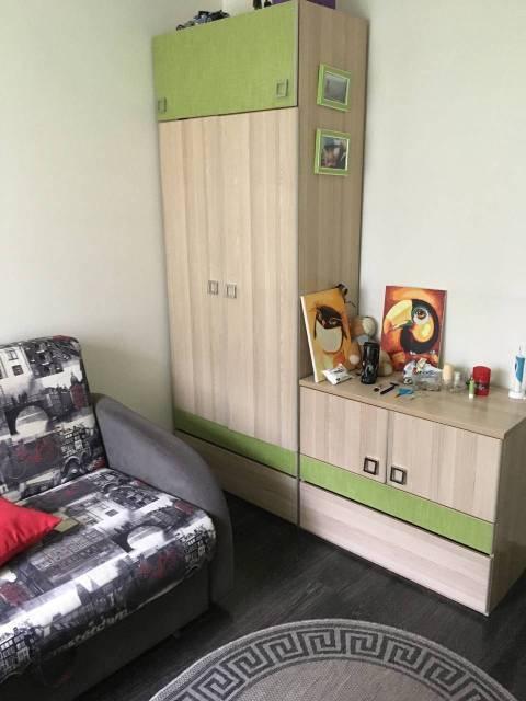 В другой спальне раскладной диван 140*200, стол письменный, шкаф, комод и две полки.
