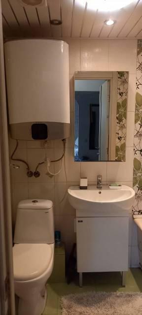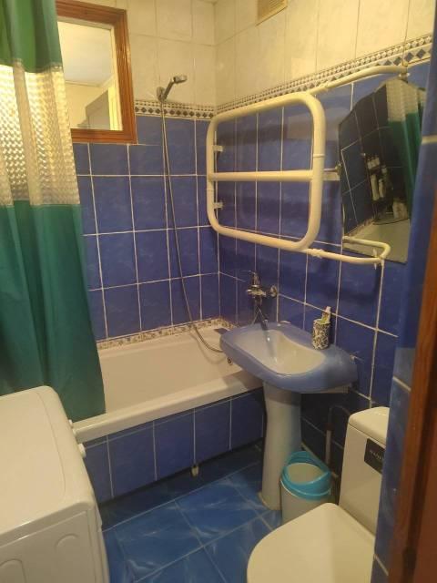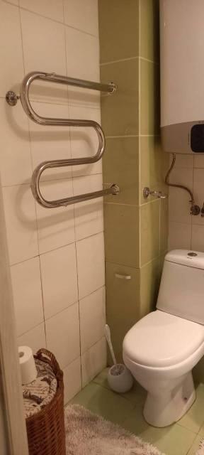 Санузел совмещенный. Есть водонагреватель. Стиральная машина в шкафу в коридоре, на балконе есть сушилка для вещей плюс дополнительная сушилка, которую можно поставить, где угодно.