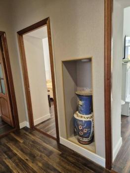 Железная дверь, Ламинат, Межкомнатные двери, Натяжной потолок в прихожей, кухне и санузле, Пластиковые окна, Тёплый пол в санузле