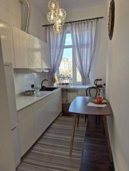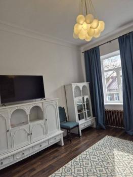 Особенности: Большие изолированные комнаты, оформлены под гостинную, спальню и одна комната оформлена под кабинет, высота потолка 3,2 метра, много воздуха и света. WI-FI, кабельное ТВ.