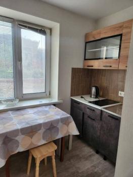 Квартира с готовой отделкой, полной мебелировкой, техникой, полностью готовой к Вашему комфортному проживанию. Удобства в квартире – стиральная машина, керамическая плита, вытяжка кухонная, набор посуды включая столовые принадлежности, электрический чайник, кондиционер, духовой шкаф, титан в ванной комнате, холодильник, +2 стула шторы, тюль, шкаф удобный для вещей, телевизор.